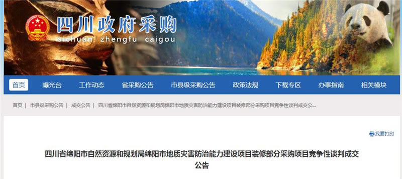 【綿陽正信·招標部消息】我公司受綿陽市自然資源和規劃局委托,對綿陽市自然資源和規劃局綿陽市地質災害防治能力建設項目裝修部分采購項目進行競爭性談判采購,該項目于2019年05月08日在四川省政府采購網掛網公示,于2019年05月13日14:00在綿陽市安昌路17號富臨花園四樓15號進行競爭性談判會議。