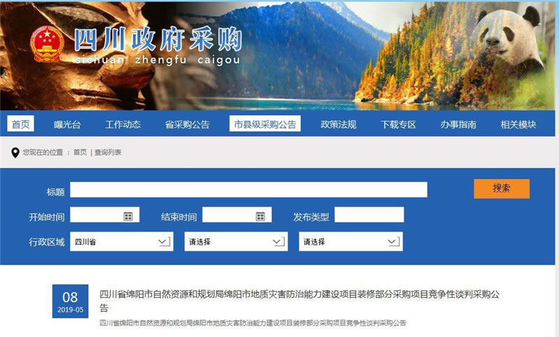 【綿陽正信·招標部消息】受綿陽市自然資源和規劃局委托由我公司招標代理部代理的“綿陽市地質災害防治能力建設項目裝修部分采購項目”通過市財政部門的審批,與與采購單位溝通共同編制的招標文件,已經掛網公示招標,供應商也陸續按照法律法規到我公司進行報名投標,該項目將于2019年5月13日在我公司進行開標。我單位也在積極準備該項目開標的相關事宜。
